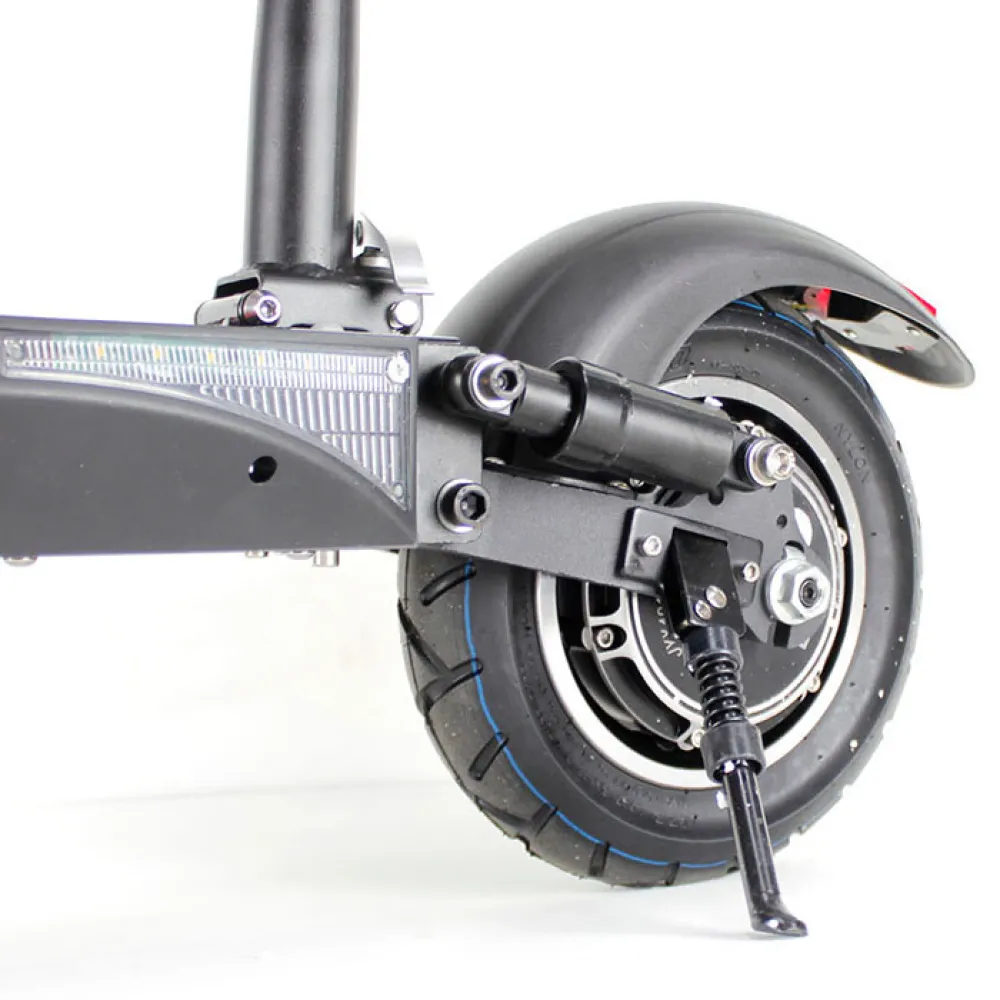Не ошибиться с выбором, купить самокат мечты поможет ознакомление с техническими характеристиками. Электросамокат, представленный в онлайн-каталоге рассчитан на 120 кг веса. Масса техники – 90 кг. Из особенностей транспортного средства производитель выделяет качественные мало стираемые колеса диаметром 10 дюймов и мощность мотор-колеса 500 Вт. АКБ емкостью 36v11Ah гарантирует дальность передвижения на одной подзарядке при скорости 35 км/час до 40 км. Техника оснащена жесткими амортизаторами, имеет подсветку. Поэтому, езда по ухабистой местности в темное время гарантирует комфорт и безопасность передвижения.