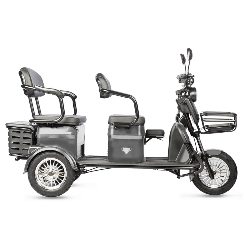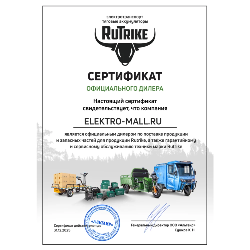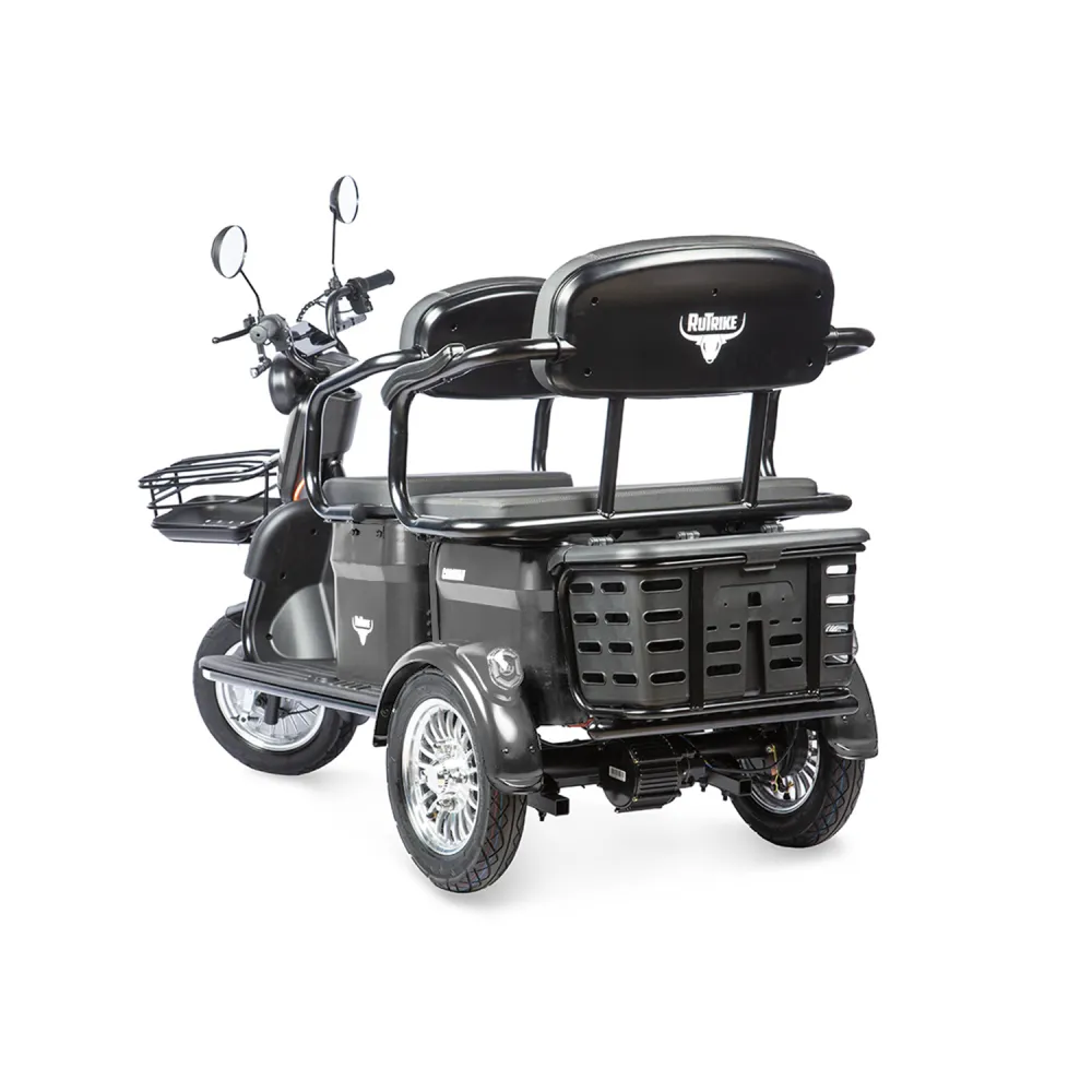Электротрицикл Rutrike Караван – универсальный вариант техники. Лидер продаж сезона. Представлен прекрасным современным дизайном от производителя rutrike. Электротрицикл Rutrike отличатся практичностью и компактностью. Купить Трицикл Rutrike Караван по лучшей цене, воспользоваться функциональностью и простотой управления предлагает наш интернет-магазин. Стальная конструкция рамы в новых моделях rutrike караван при массе 113 кг выдерживает нагрузку до 150 кг. Комфорт в электрическом трицикле обеспечен мягкими пассажирскими сиденьями, размещенными в 2 ряда, удобным сиденьем для водителя. Трициклы rutrike караван отличаются особым удобством. Модель электротрицикла оснащена мощностью электродвигателя 800 Вт. Электротрицикл rutrike караван развивает скорость до 25 км/час и имеет запас хода до 45 км. Универсальное транспортное средство передвижения при компактных габаритах считается одним из самых удобных. Для эксплуатации не требуется разрешение ГИБДД. Удобное управление не требует обучения и навыков вождения. В моделях имеется светодиодная фара, которая обеспечивает хорошую видимость при любых погодных условиях. Наличие в модели караван фирменных тормозов обещает своевременность остановки. Заказать электротрициклы караван быстро позволит телефонный звонок менеджеру мы работаем напрямую с производителями. Гарантируем, что в электрическом байке имеется все необходимое для удобных комфортных прогулок на свежем воздухе.