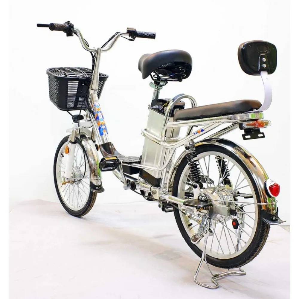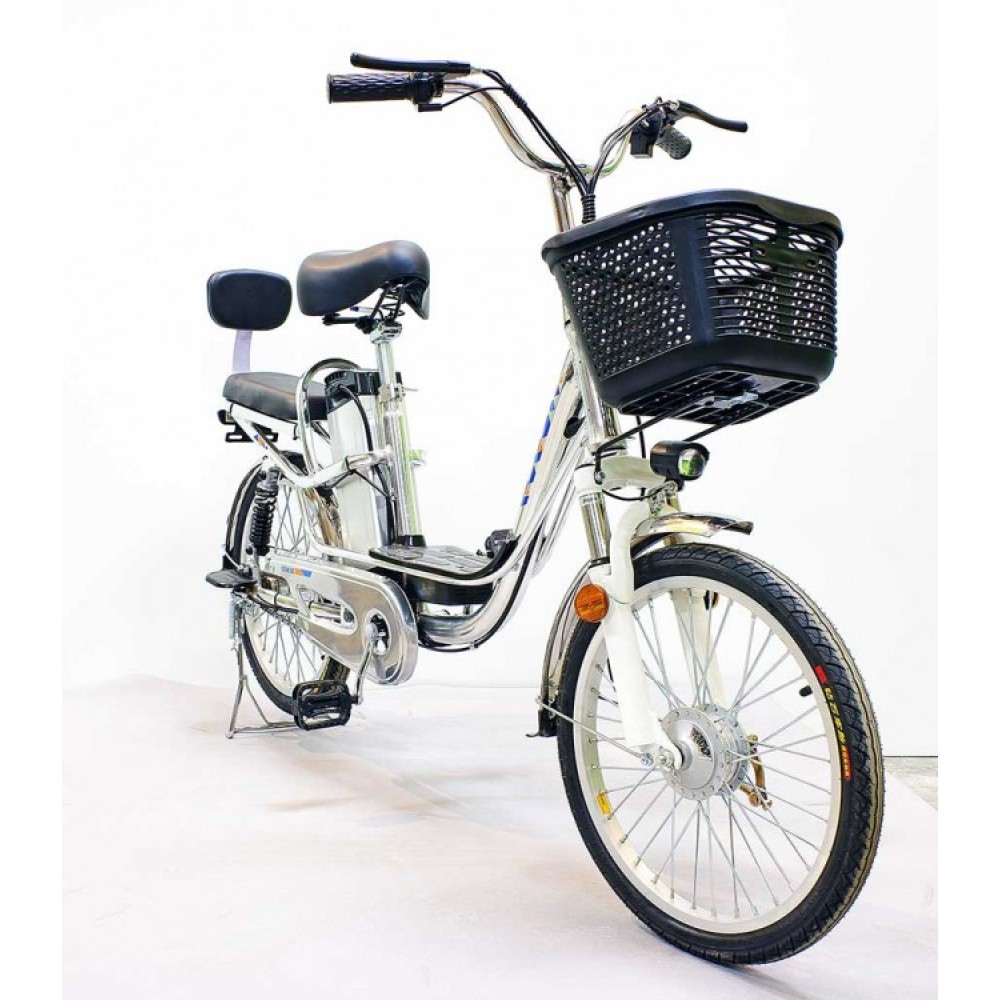 Электровелосипед GreenCamel Транк-2 (R20 350W 48V) Алюм 2-х подвес – выглядит современно и приметно. О такой комплектации мечтает начинающий и профи-райдер. Техника практичная во всех смыслах слова. Обустроена необходимыми элементами для активного время провождения. Оснащена вместительной передней корзиной, в которой удобно перевозить продукты и другие вещи. Имеет второе пассажирское сиденье. Наличие мягкой спинки увеличивает степень комфорта, допускает перевозку детей. Модель может использоваться в качестве повседневной, для поездки в магазин, ежедневных вылазок и поездки с ребенком в садик или другое место.