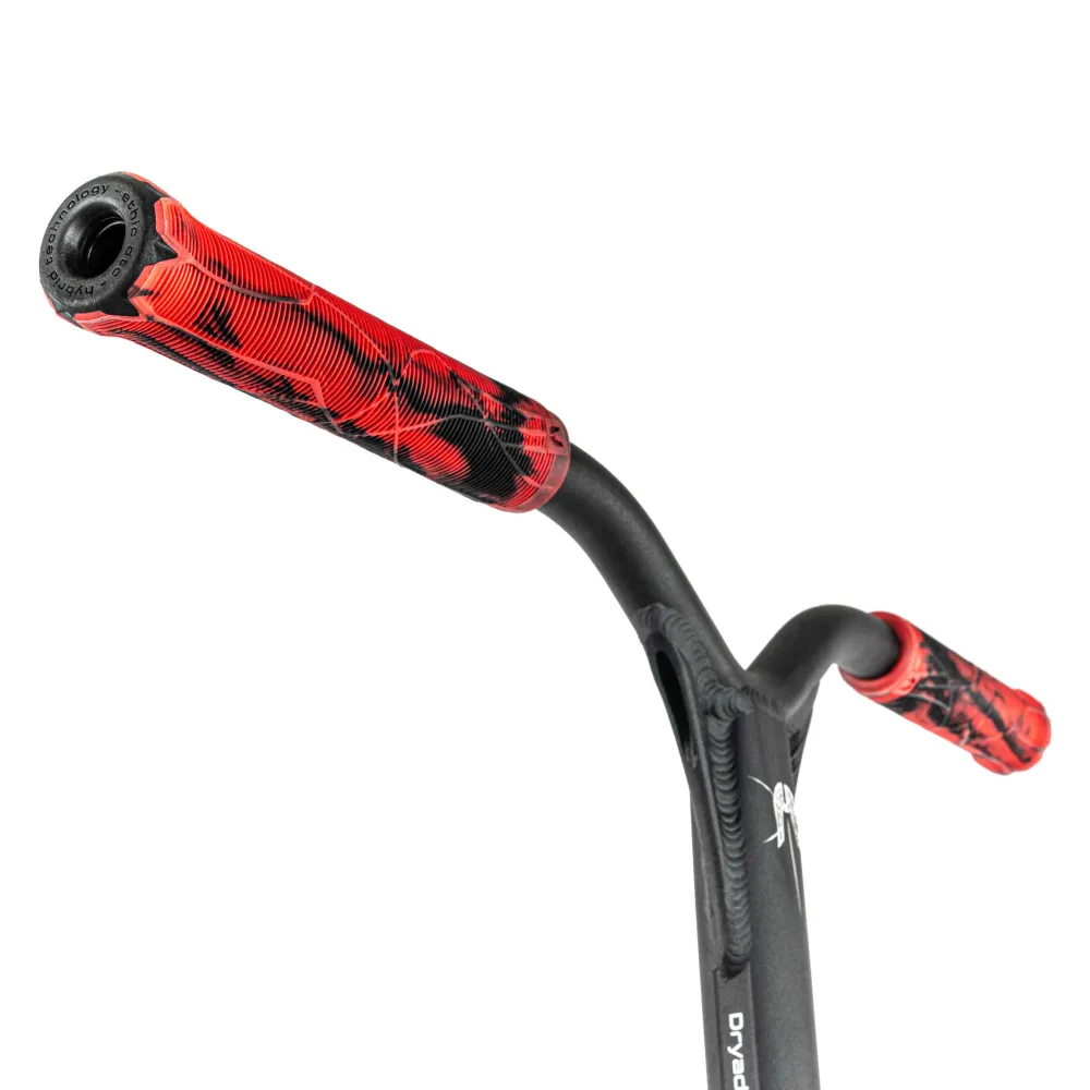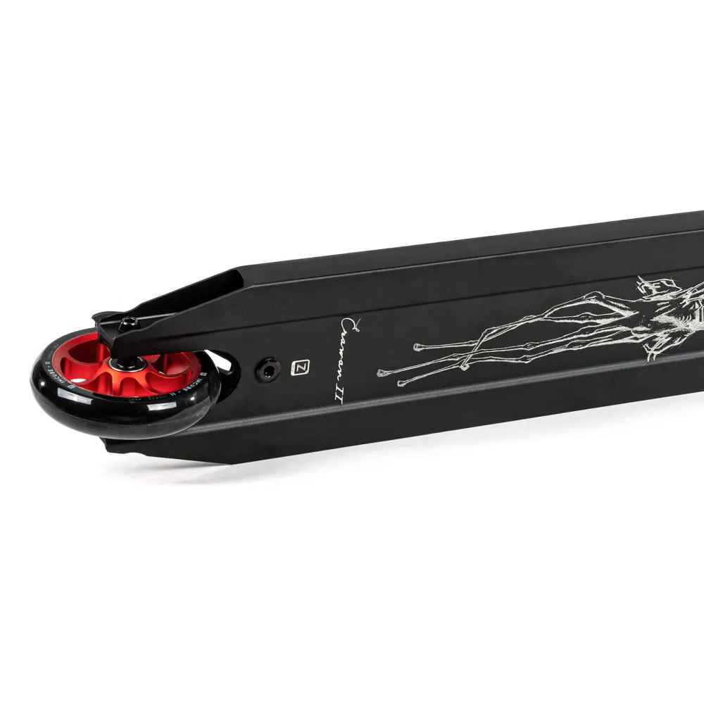 Этот самокат — идеальный выбор для тех, кто предпочитает яркость и динамику в каждой детали. Вопреки строгим черным тонам, элементы самоката, такие как грипсы, диски и хомут, окрашены в насыщенный красный цвет, что придает ему дерзкий и запоминающийся вид. С весом всего 2.79 кг, он обеспечивает легкость и маневренность, что делает его идеальным для выполнения сложных трюков. Диаметр колес 110 мм и подшипники класса ABEC 9 гарантируют плавность и скорость, позволяя вам наслаждаться каждой поездкой.