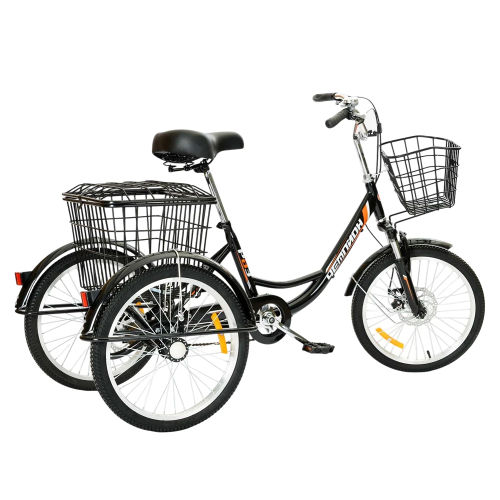 Подходит для прогулок, поездок на дачу/рынок, перевозки покупок (корзины до 50 кг сзади); для взрослых 50+ лет или новичков без подготовки.Трёхколёсная база идеальна для пожилых или с ограниченными возможностями (стабильность); привлекает дачников/садоводов.​​